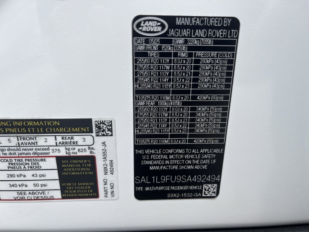PREMIUM INTERIOR PROTECTION & STORAGE PACK, OSTUNI PEARL WHITE PREMIUM METALLIC, HEAD-UP DISPLAY, EMERGENCY PACK, BLACK EXTERIOR PACK, BLACK CONTRAST ROOF, BASIC REAR SEAT CONVENIENCE PACK, 22" FULL SIZE SPARE WHEEL, Wheels: 21" Satin Dark Grey (Style 5126), Valet Function.